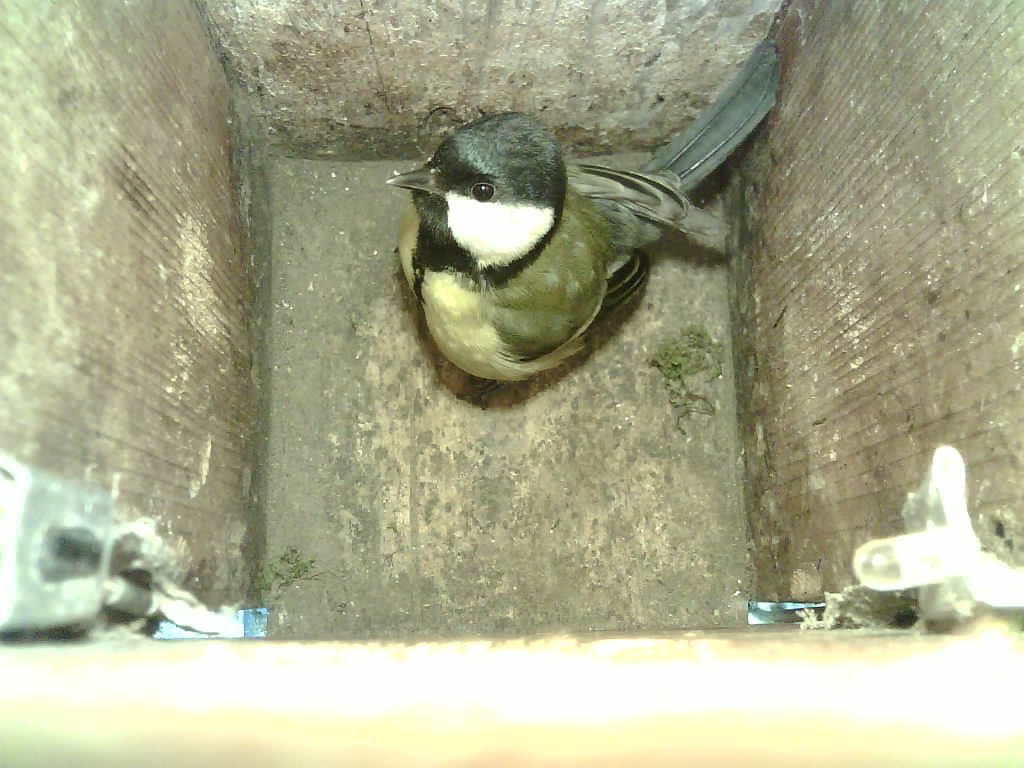 Im Nistkasten befindet sich eine Video-Kamera, die von der Elektronik zu festgelegten Uhrzeiten kurz eingeschaltet wird. Die Videoaufzeichnungen erfolgen auf eine Micro-SD-Karte. Der Nistkasten wurde 25.05.2023 mit Lichtschranken bestückt.
