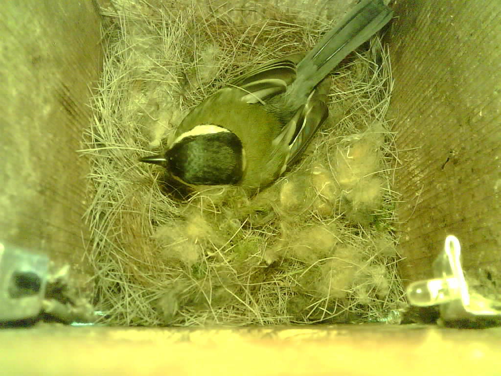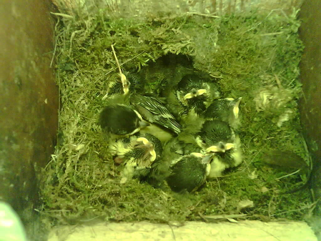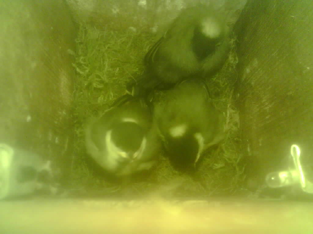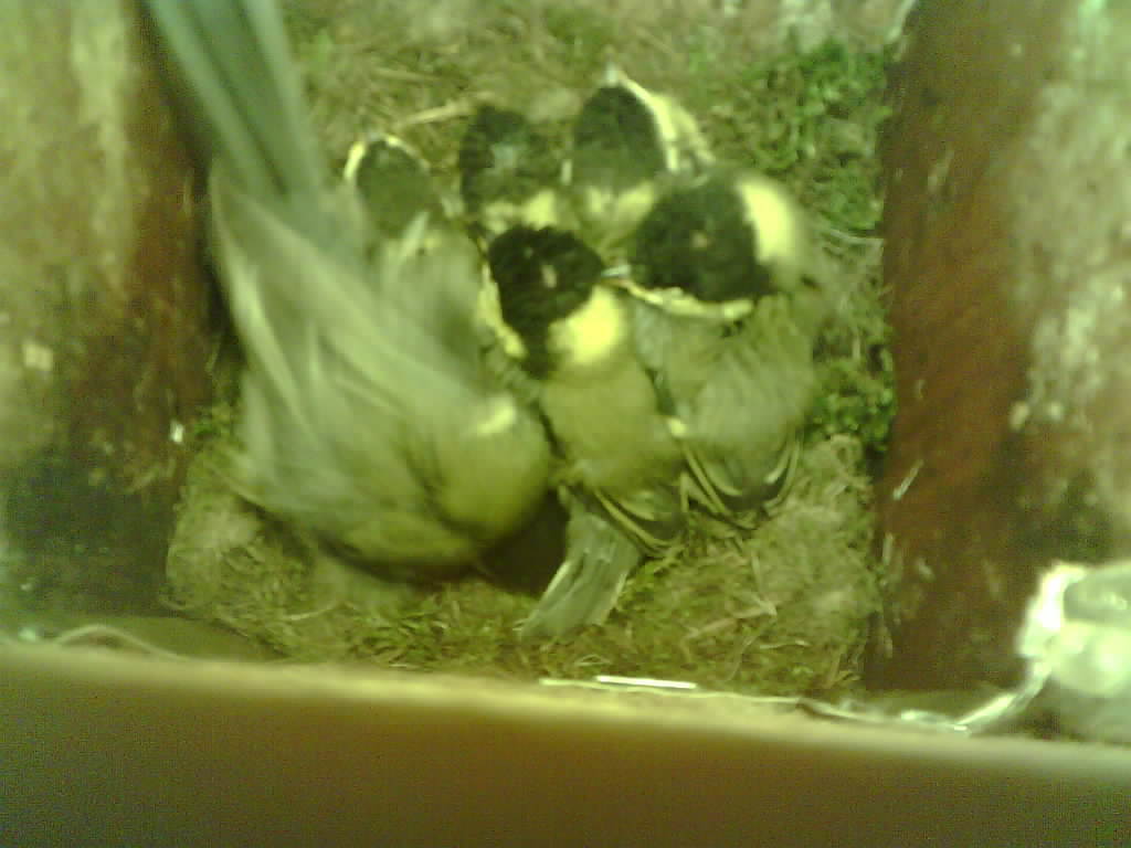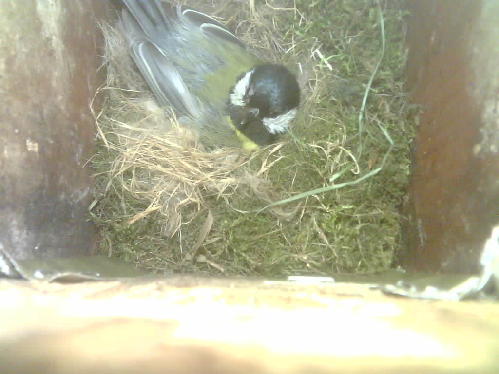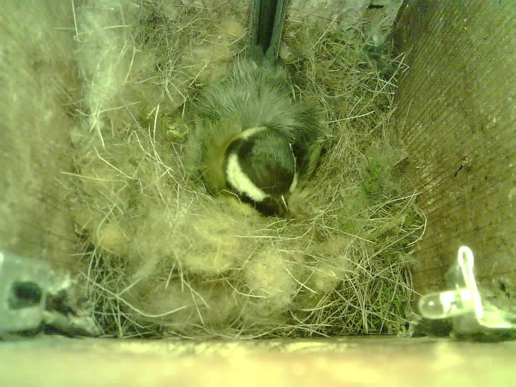 Das alte Nest wurde am 08.02.2025 beseitigt und der Nistkasten gereinigt. Die Kohlmeisen haben acht Eier gelegt. Am 21.05.2025 um 19:00 Uhr ist der erste von sieben Jungvögeln geschlüpft. Am 02.06.2025 lebten noch sechs bis um 20:38 Uhr ein Angriff erfolgte. Den Angriff überlebten drei Jungvögel. Diese sind ausgeflogen.