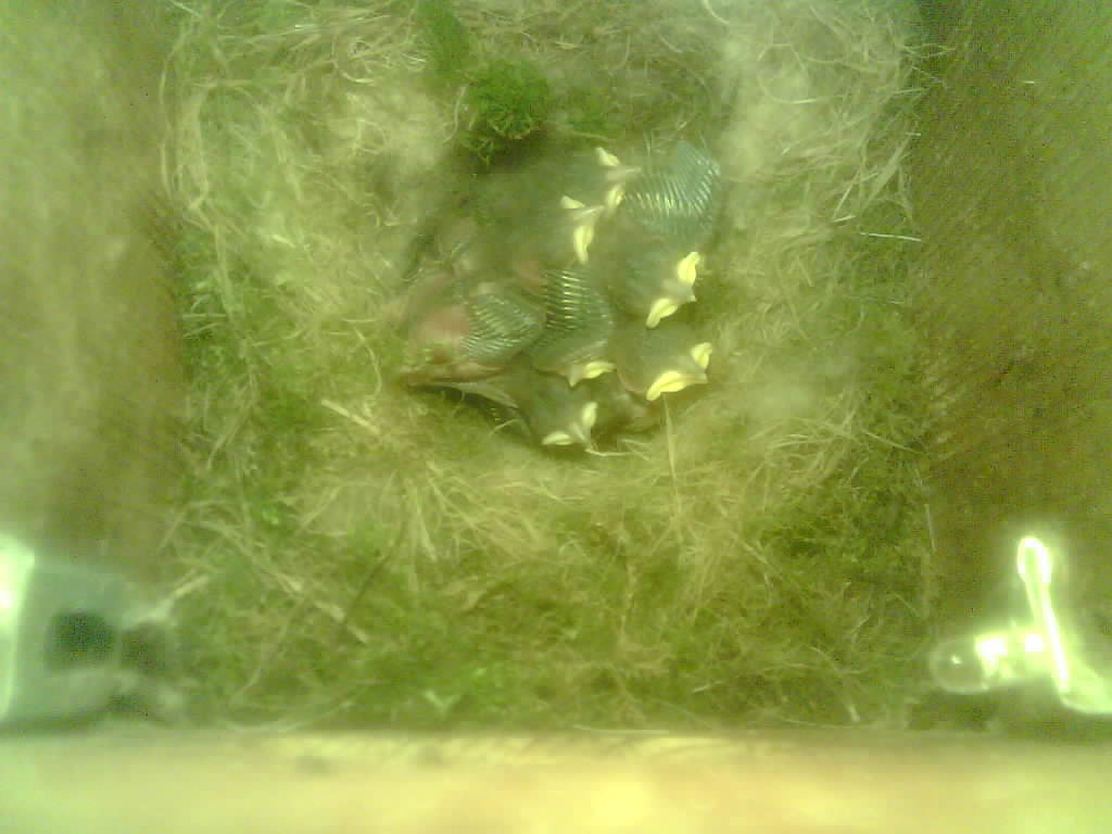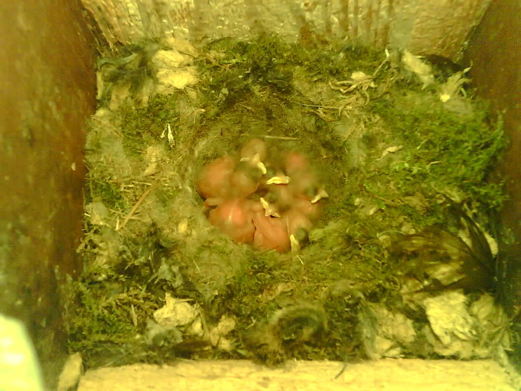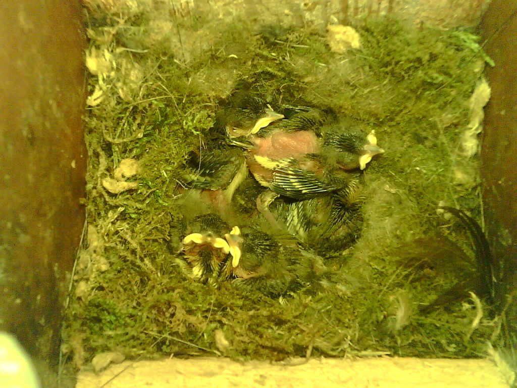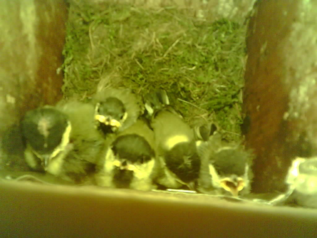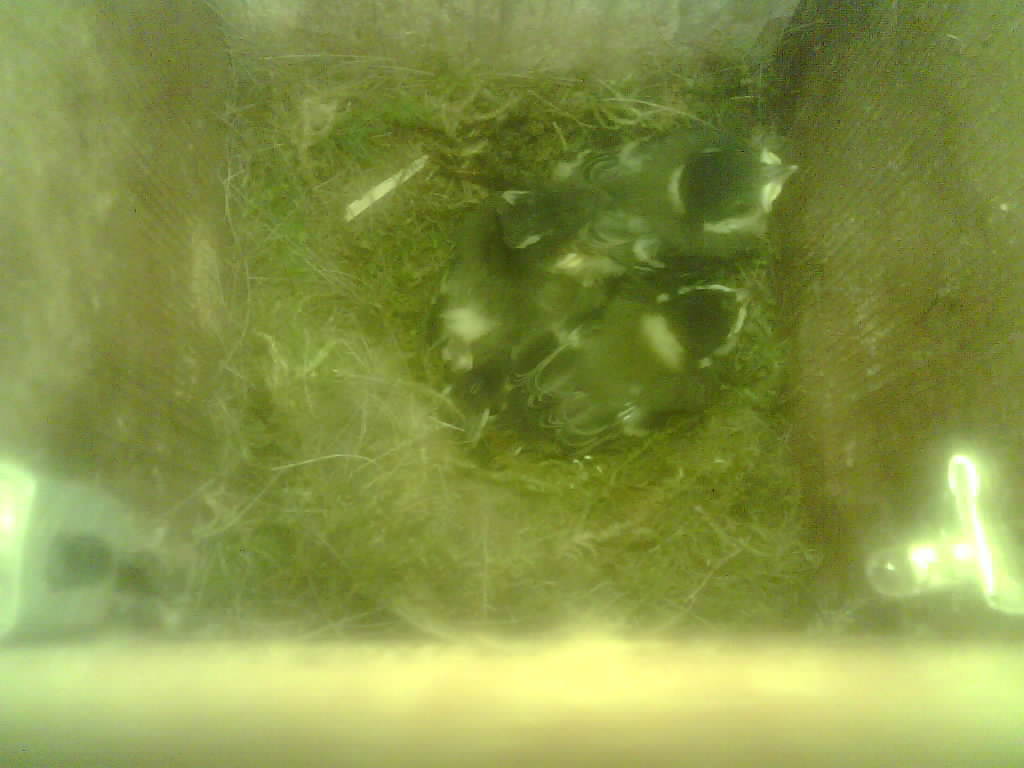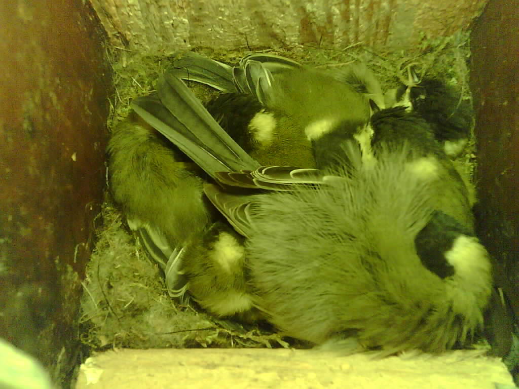 Das alte Nest wurde am 08.02.2025 beseitigt und der Nistkasten gereinigt. Die Kohlmeisen haben acht Eier gelegt. Am 21.05.2025 um 19:00 Uhr ist der erste von sieben Jungvögeln geschlüpft. Am 02.06.2025 lebten noch sechs bis um 20:38 Uhr ein Angriff erfolgte. Den Angriff überlebten drei Jungvögel. Diese sind ausgeflogen.