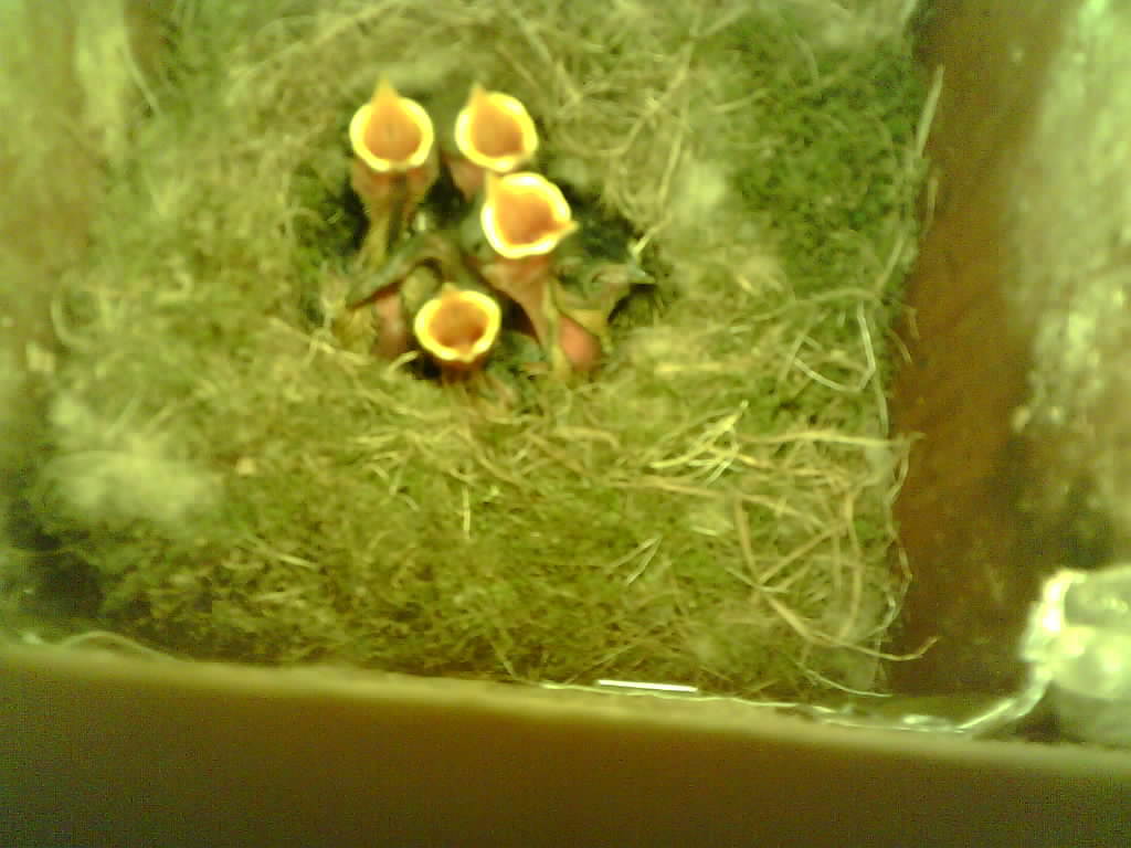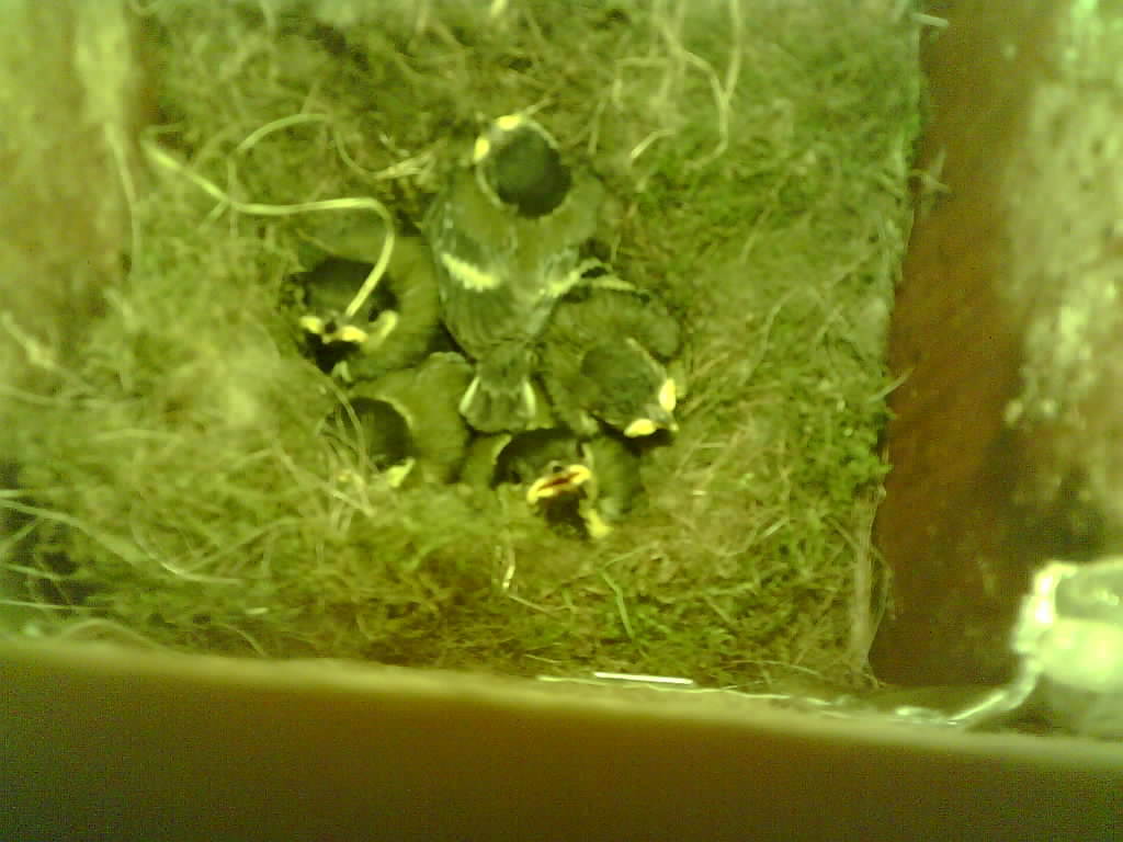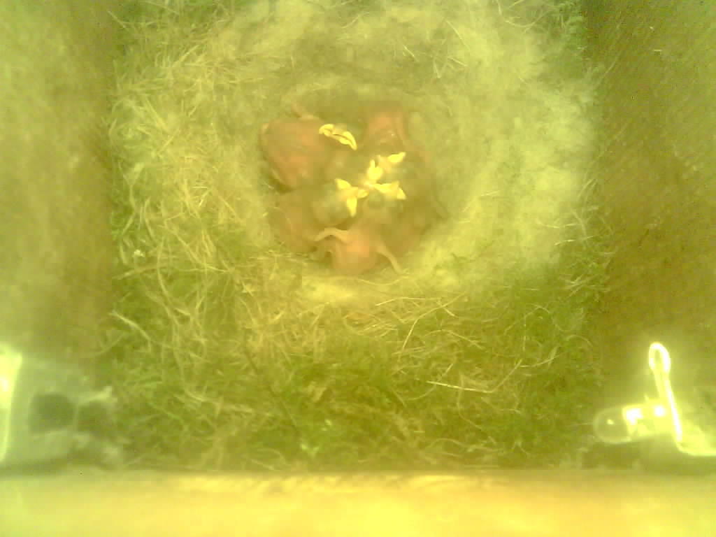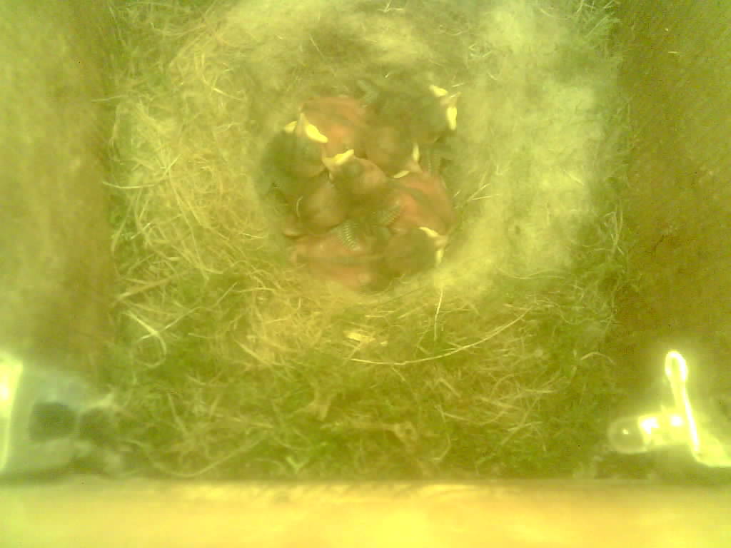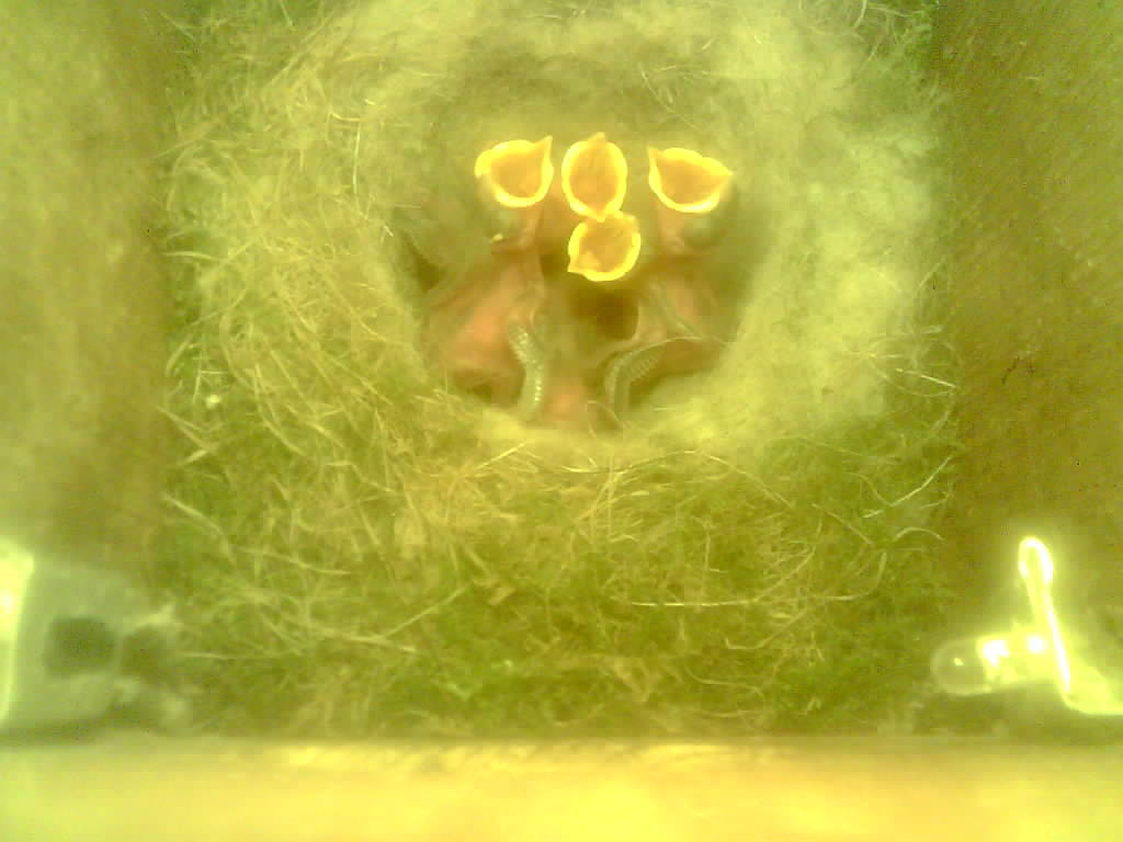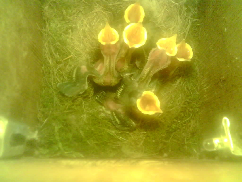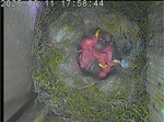 Vom Schlüpfen des ersten Nestlings bis zum Ausfliegen der Jungvögel kann beobachtet werden wie die Altvogel die Eierschalen und den Kot der Jungvögel fressen, wie ein Jungvogel mit einer Feder gefüttert wird und wie schnell das Wachstum in der zweiten Hälfte der Nestlingszeit erfolgt.