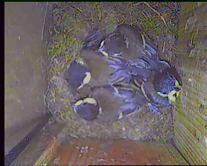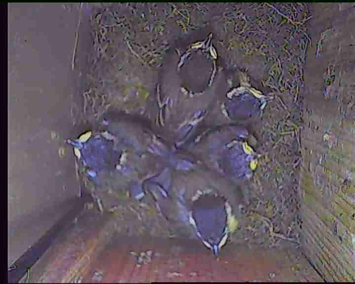2023 NK01: Fünf junge Kohlmeisen fliegen aus.