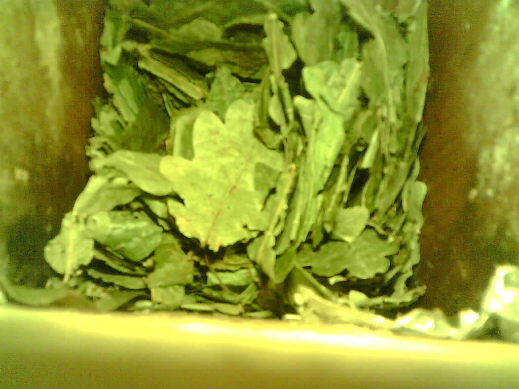 Ein Siebenschläfer transportiert grüne Blätter in den Nistkasten und baut damit ein Nest. Den Tag über verbringt der nachtaktive Siebenschläfer im Nistkasten.