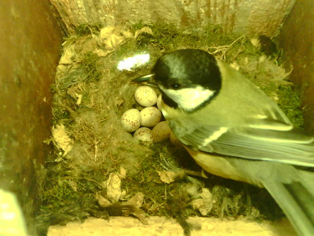 Die Kohlmeise brütet auf den Eiern