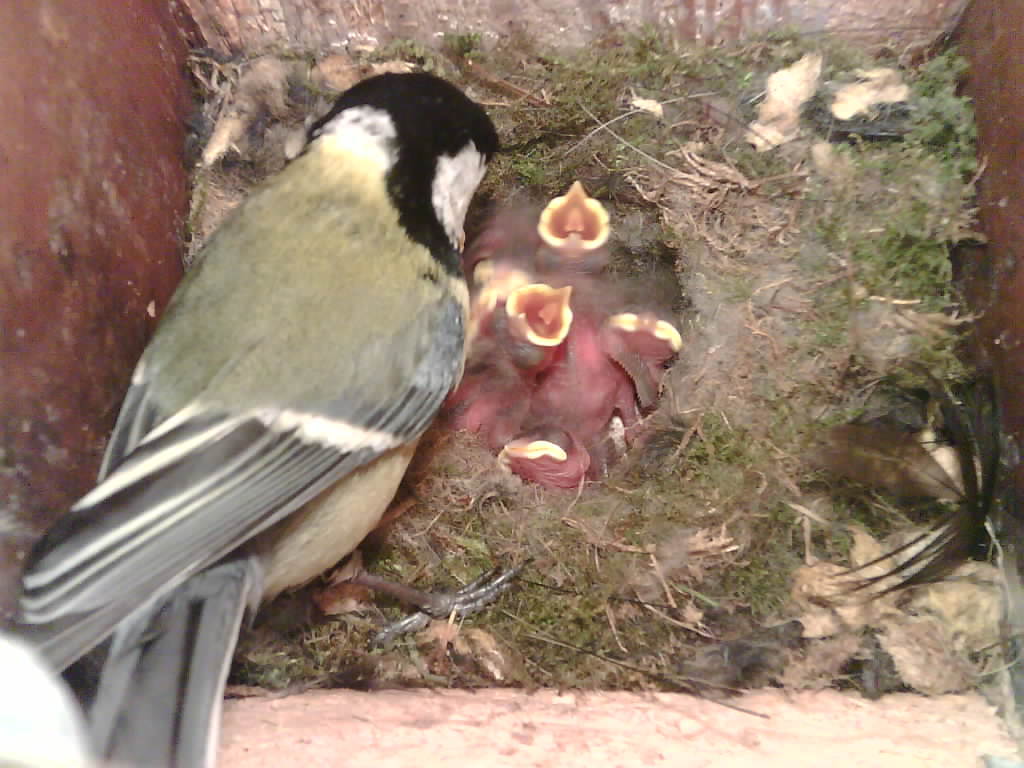 NK_D1: Die jungen Kohlmeisen werden gefüttert