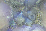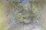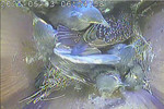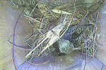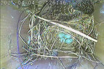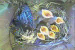 NK_D1: Der vierte Jungvogel ist geschlüpft und der Altvogel frisst die Eierschalen.