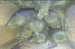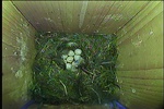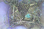 Täglich wird ein Ei gelegt. Das Gelege ist an manchen Tagen abgedeckt.
