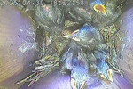 Die wenige Tage alten Blaumeisen werden im Nistkasten gefüttert