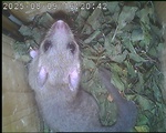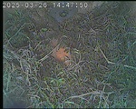 Das alte Nest wurde am 08.02.2025 beseitigt und der Nistkasten gereinigt. Jetzt transportieren Kohlmeisen Moos in den Nistkasten. Das erste von sechs Eiern wurde am 26.05.2025 gelegt. Am 12.06.2025 schlüpften die ersten der sechs Jungvögel. Ein Jungvogel starb. Am 28.06.2025 flogen die fünf überlebenden Jungvögel aus. Jetzt ist tagsüber ein Siebenschläfer im Nistkasten. Er hat Anfang August sechs Junge geboren. Am Abend des 15.08.2025 ist der Siebenschläfer mit den sechs Jungen in den Nistkasten NK_D2 umgezogen.